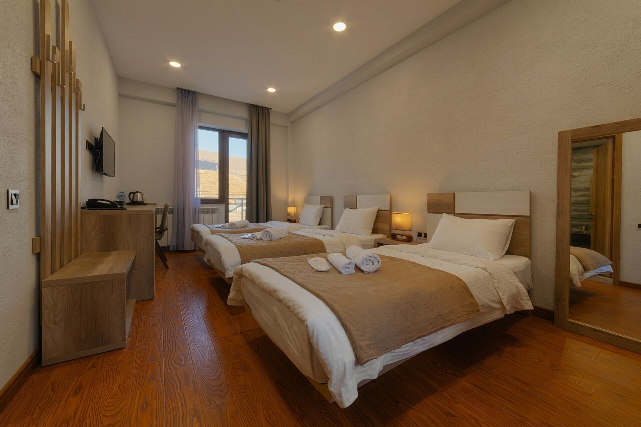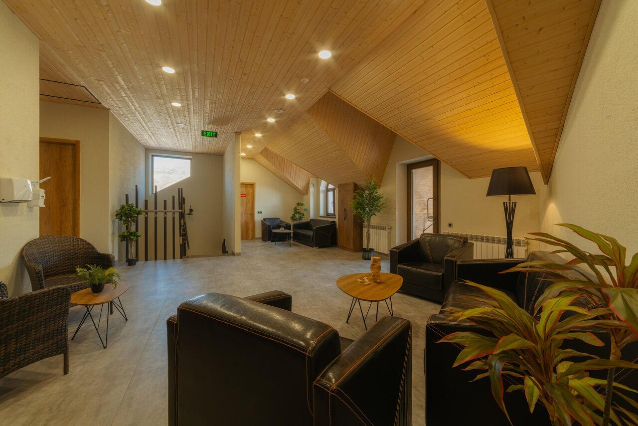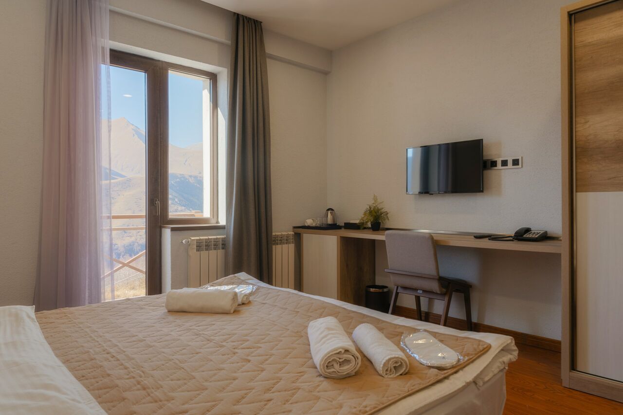 Услуги: В отеле работает Snow Time Bar — уютный бар-ресторан с блюдами грузинской и европейской кухни, коктейлями, кальянами, настольными играми и PlayStation. Из зала ресторана открывается панорамный вид на горы.
