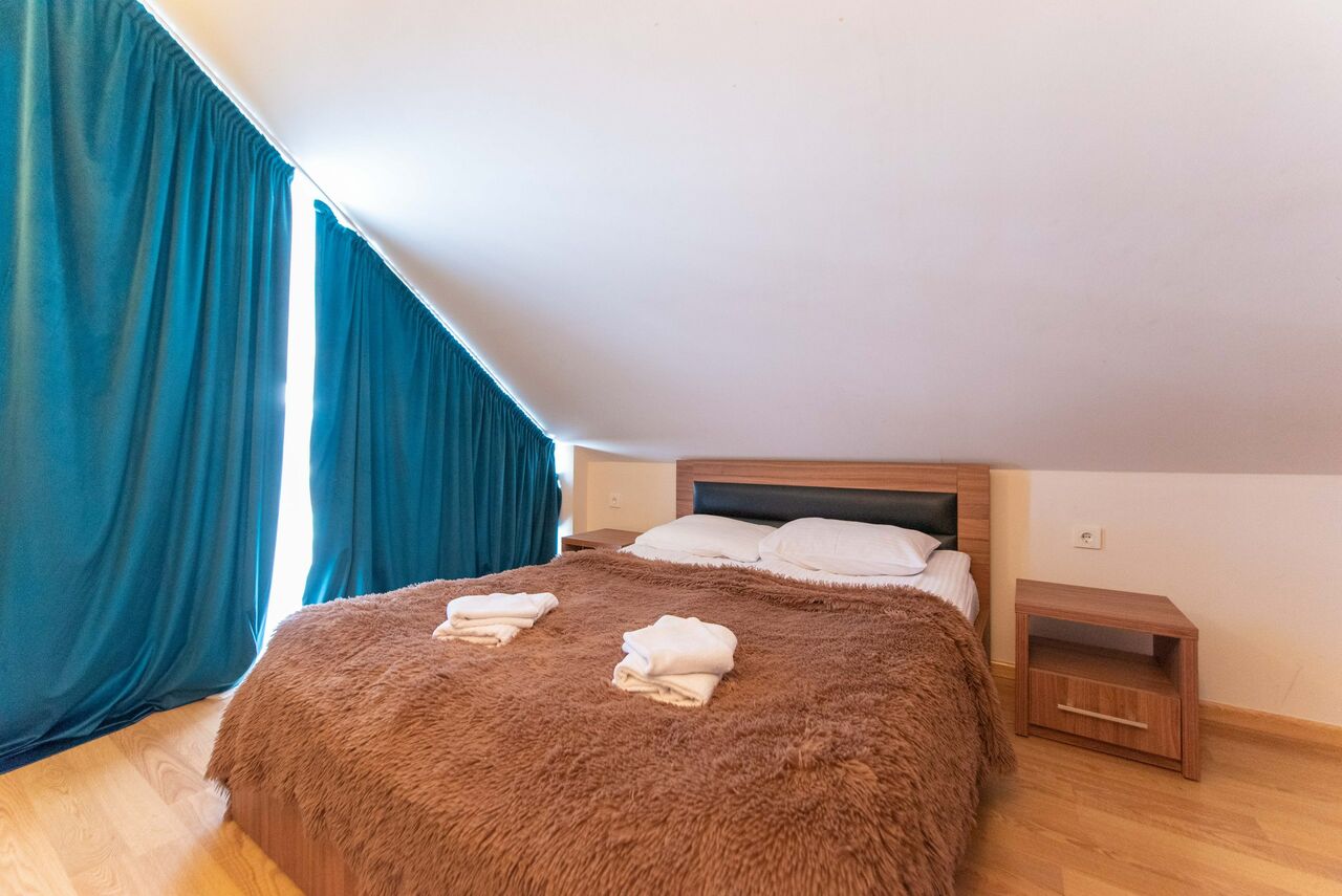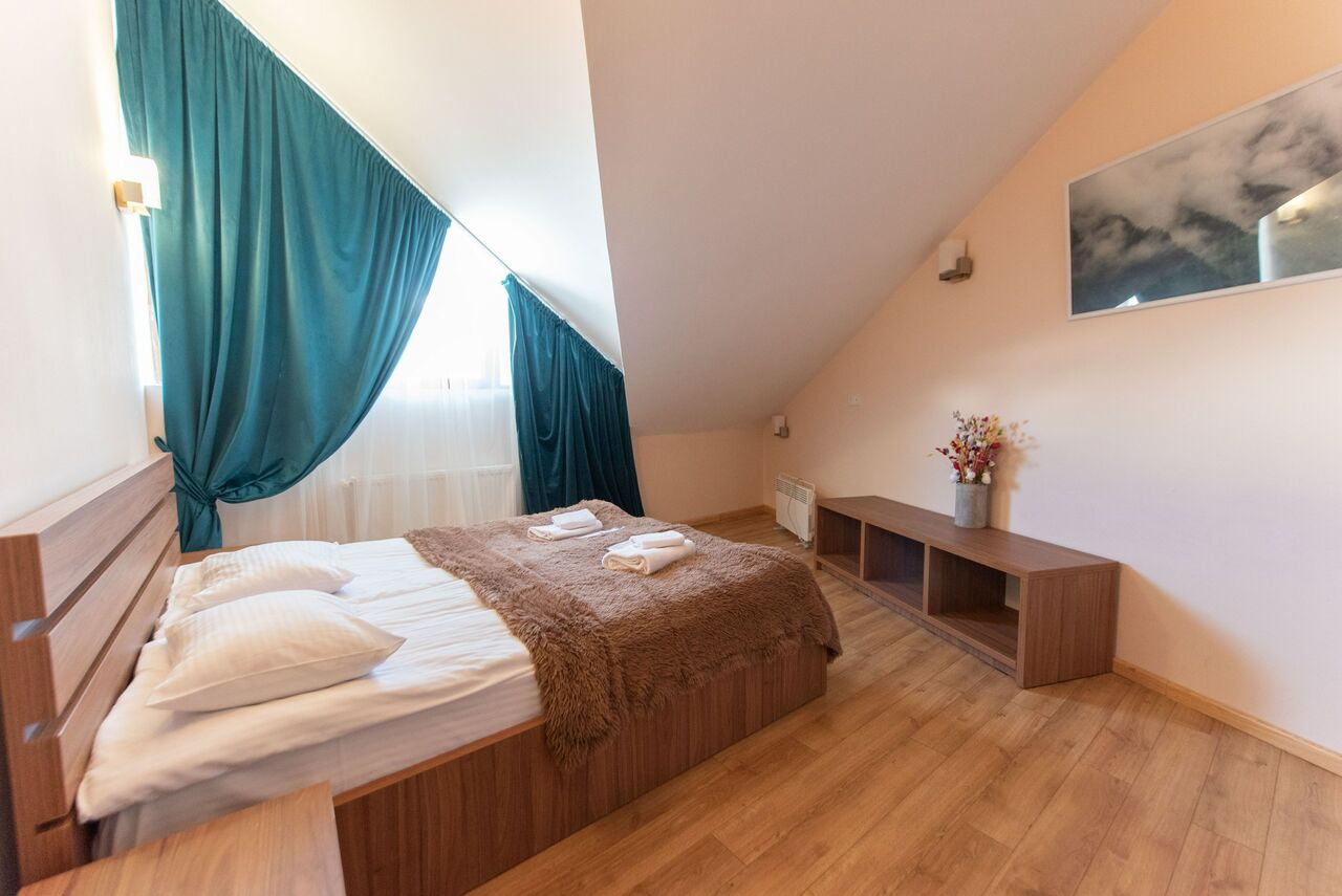 Оснащение: Двухэтажные апартаменты (100 кв м) с балконом в II корпусе Нового Гудаури, в которых комфортно будет остановиться компанией друзей или большой дружной семьёй.
