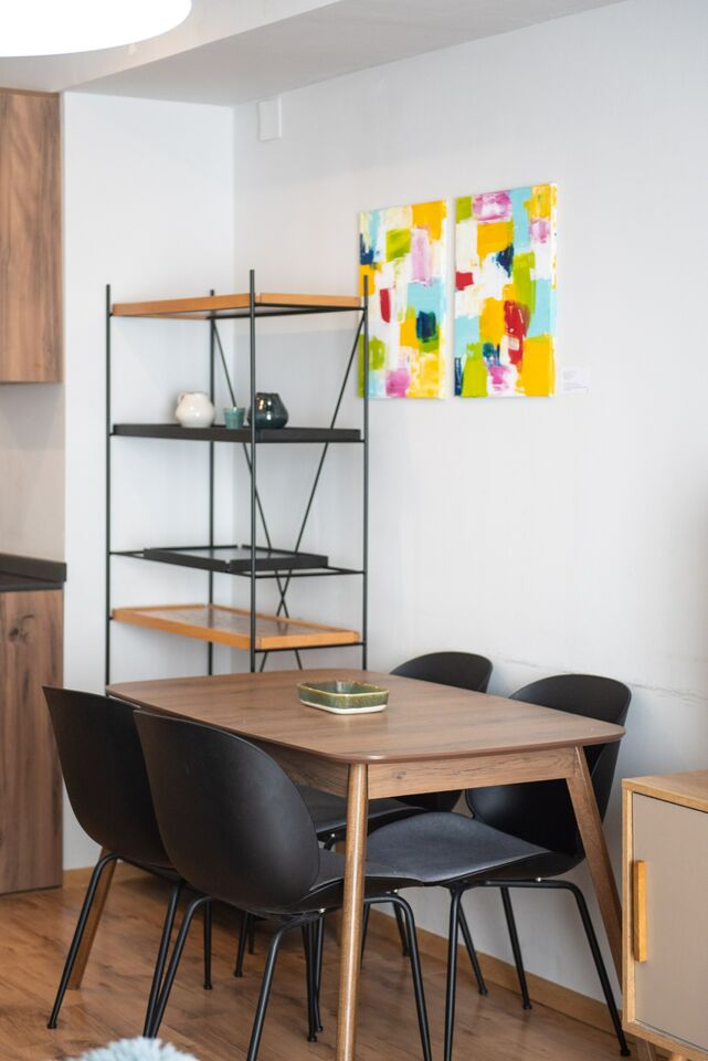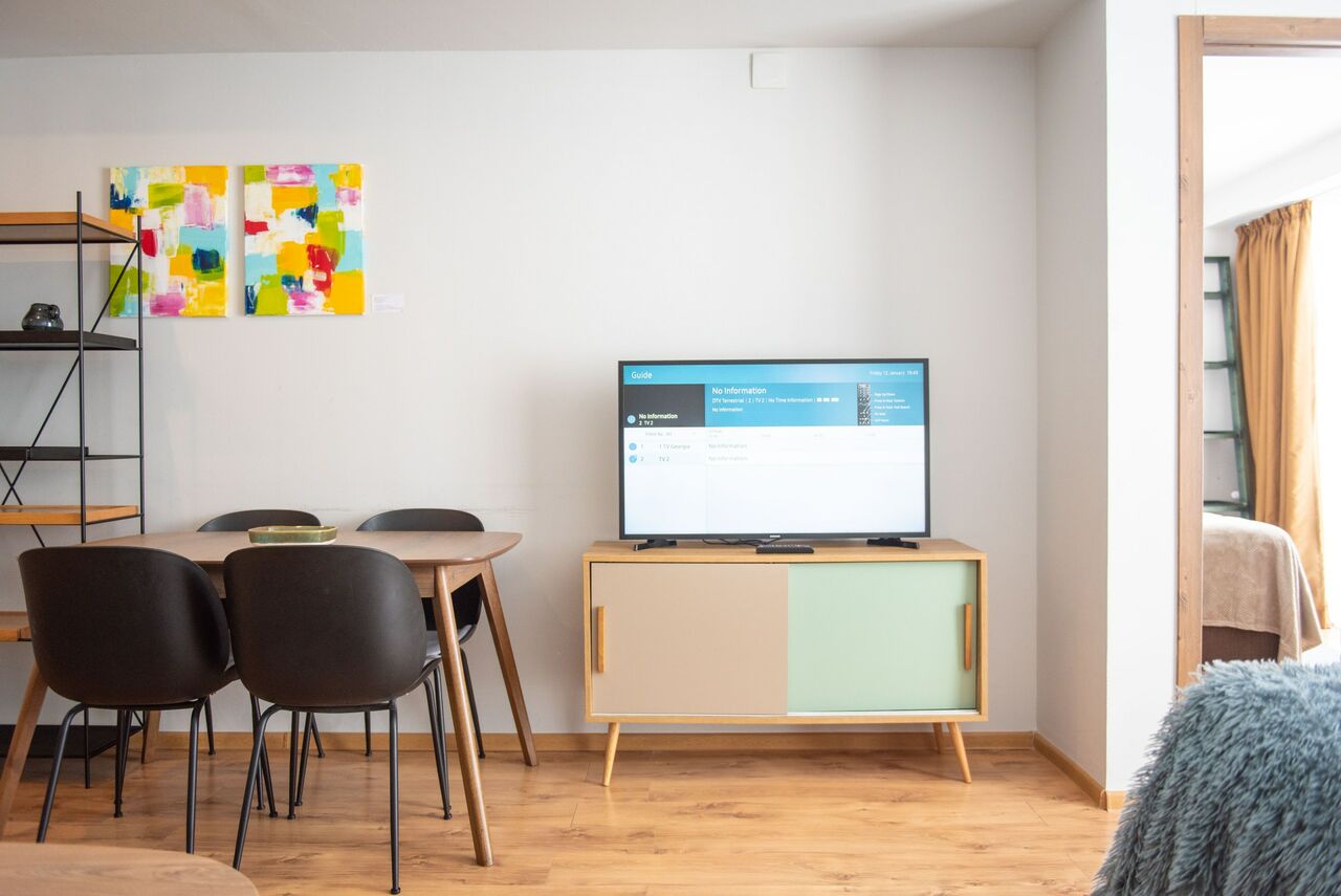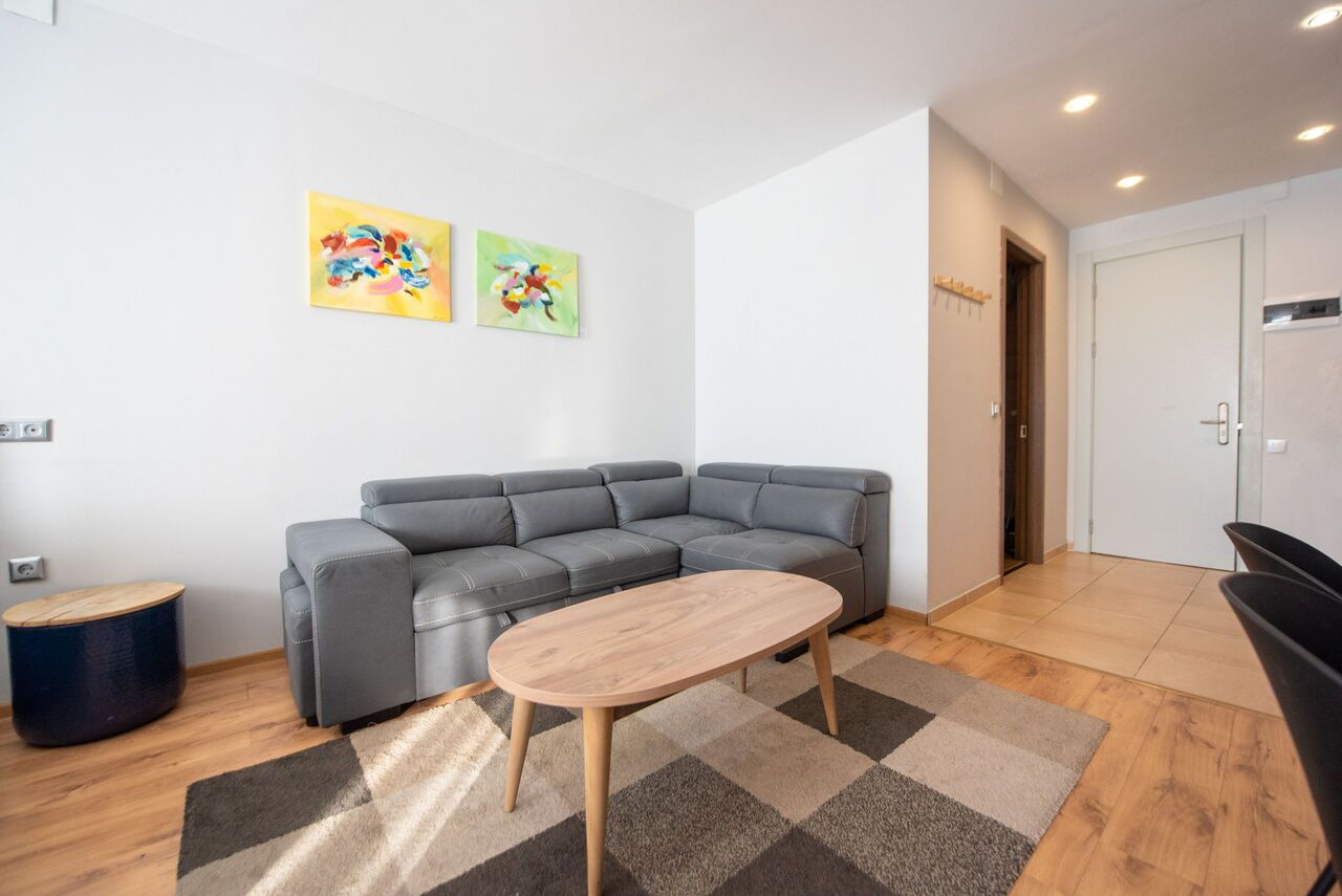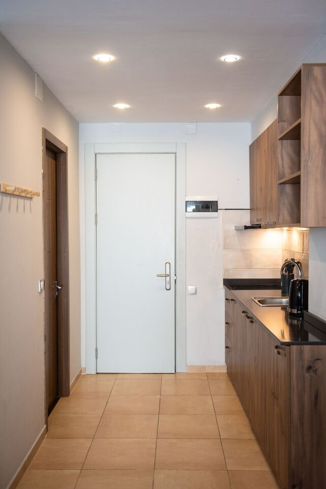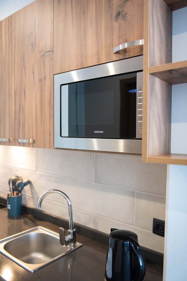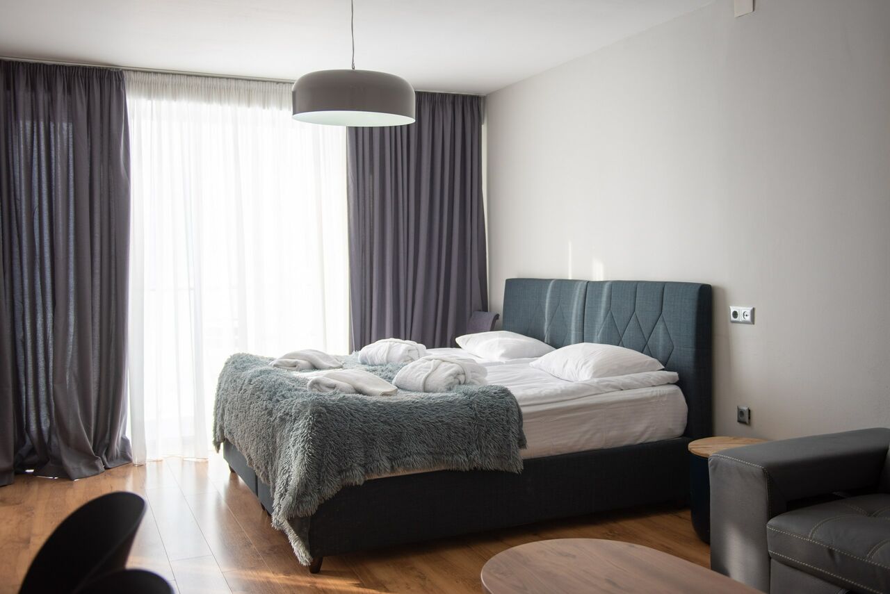 квартира рассчитана на 5 человек, есть одна двуспальная кровать, 1 односпальная кровать, один диван-кровать на 2 человека, телевизор, бесплатный Wi-Fi, также нашим гостям предоставляется скидка 20 % в спа-центре и 10 % скидка в ресторане «Шале»
