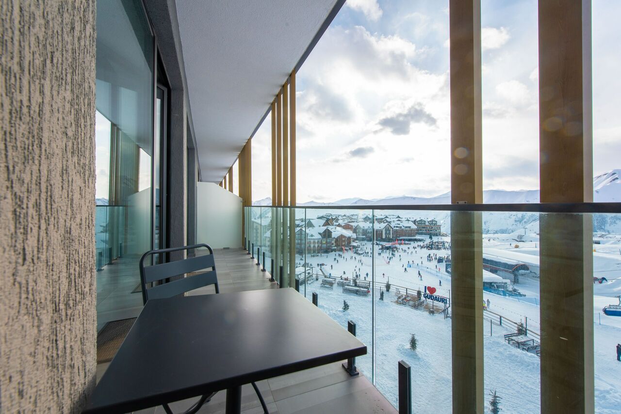 Месторасположение: Квартира расположена в здании ''Атриум'', 4-й этаж, с прекрасным видом на горы и гондольные подъемники, есть ресторан с террасой, спа-центр, магазин проката лыж в здании, парковочное место,