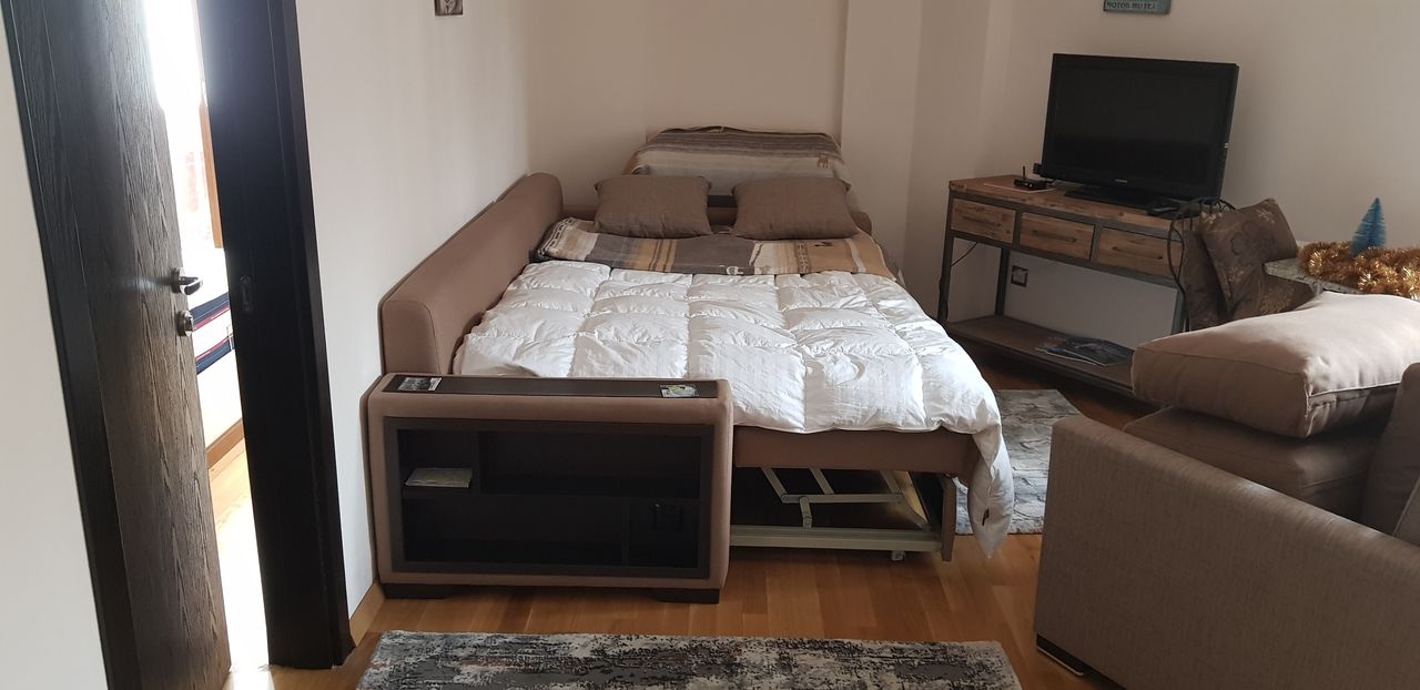 Вместимость 2-5 человек. Спальная зона: в спальне одна двухспальная кровать (180х200). В гостиной зоне есть большой раскладной диван для двоих и 1 раскладывающееся кресло.