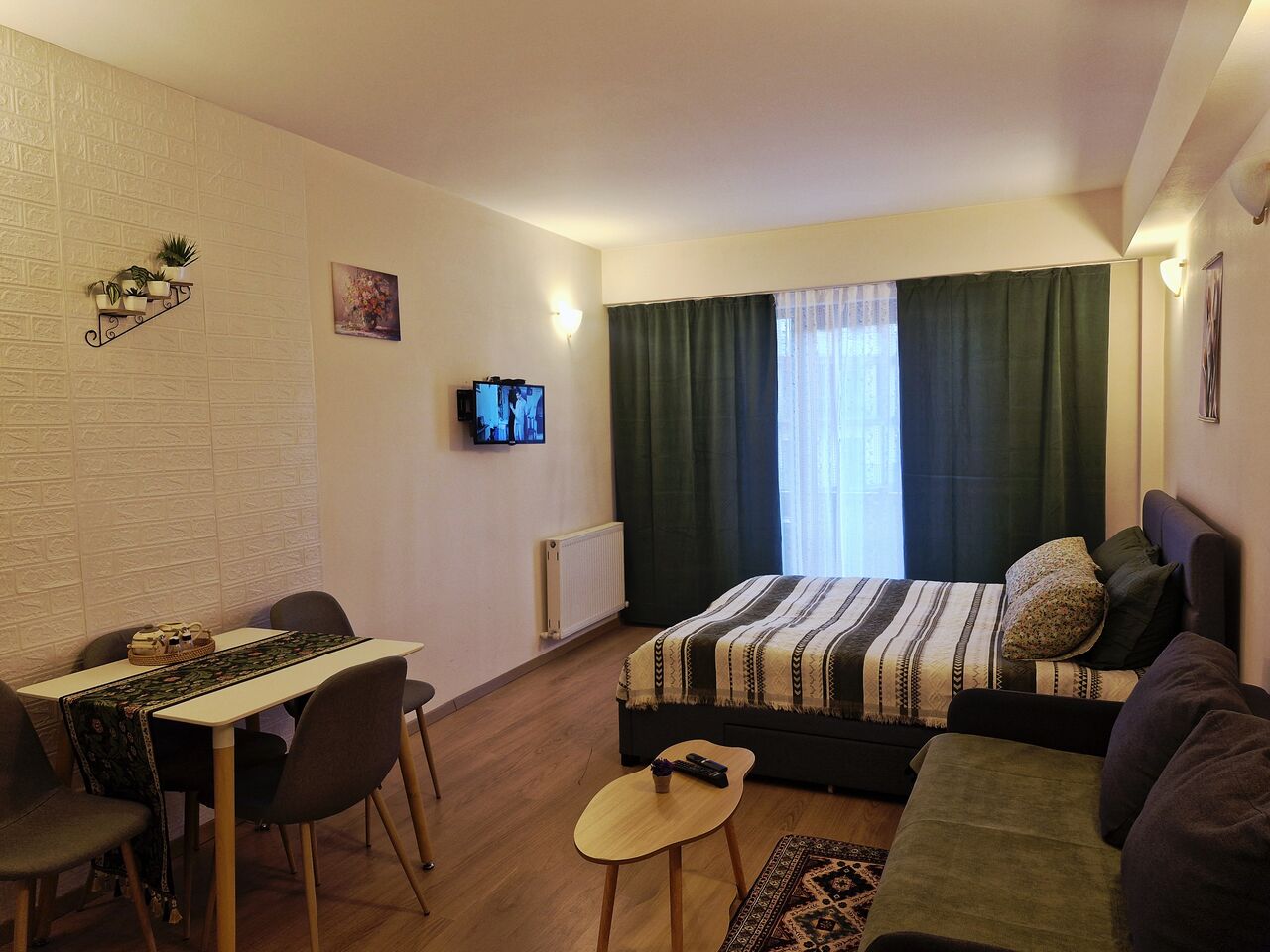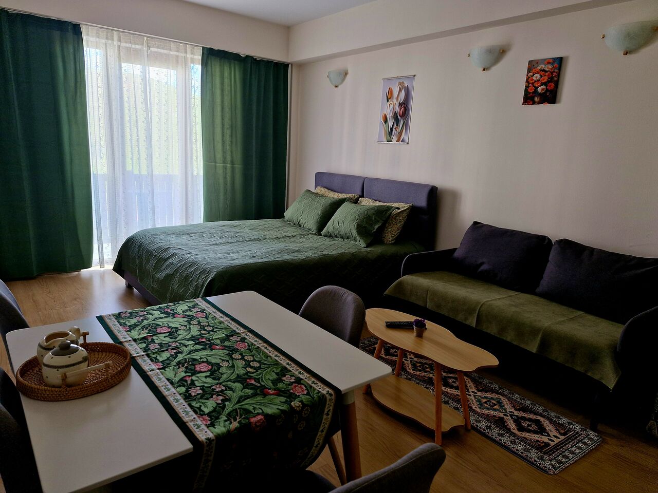 Месторасположение: Квартира расположена в Новом Гудаури, Блок 1, на втором этаже. Вокруг здания есть магазины и аптека, кафе и ресторан.