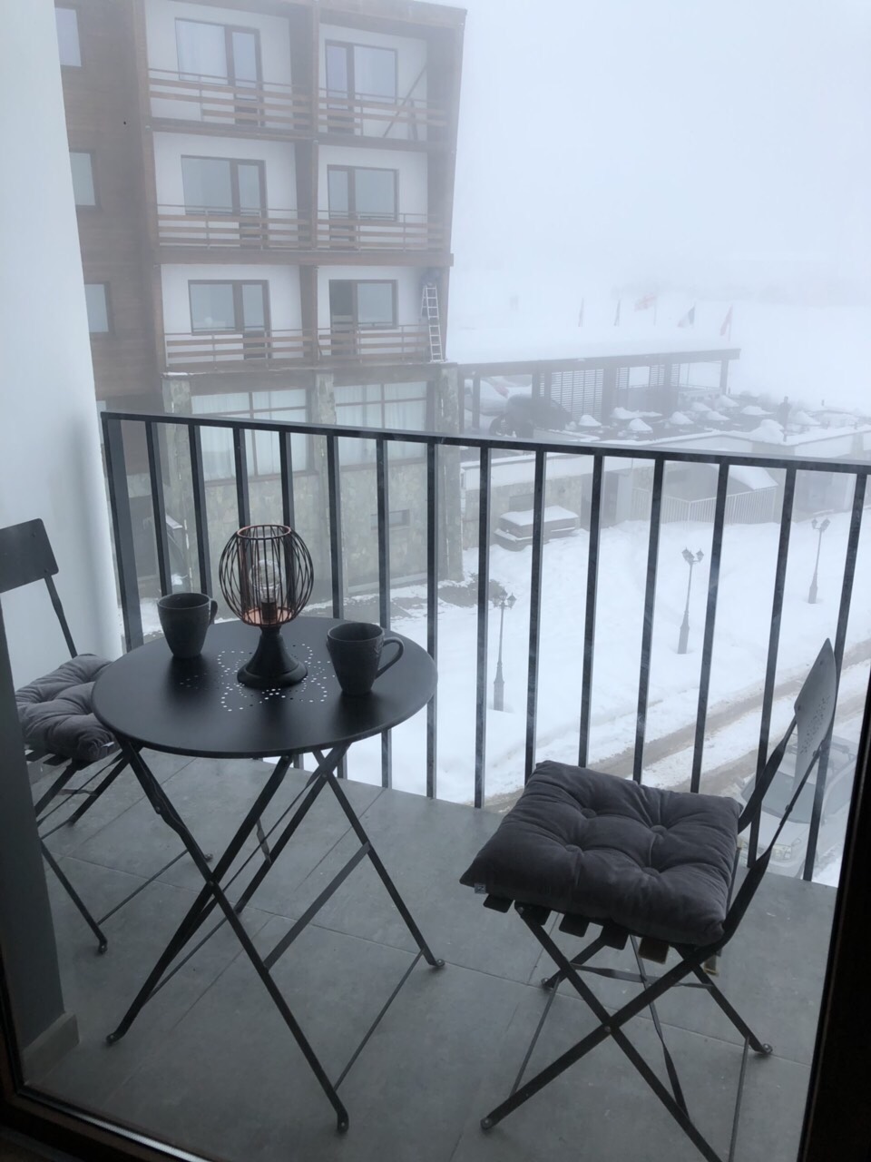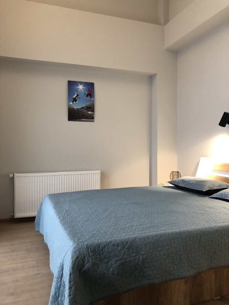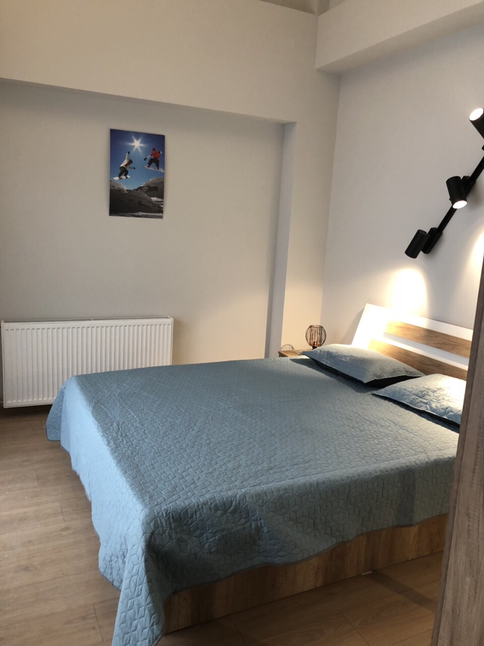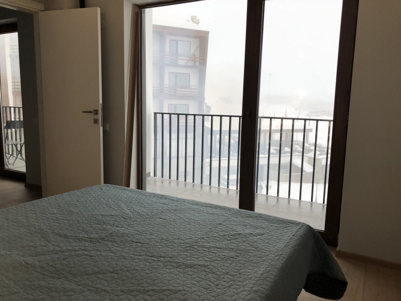 Наша квартира находится в новам здание возле второй трассы, можете прямо на лыжах выити на трассу. В доме есть лифт, охрана, 24/7 консьерж, уличная парковка, бесплатное "ски депо".