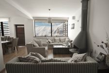 болъшой балкон с панорамными видами всего Гудаури. В стоимость входит трансфер и высокоскоростной интернет