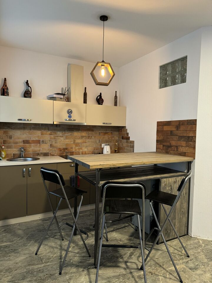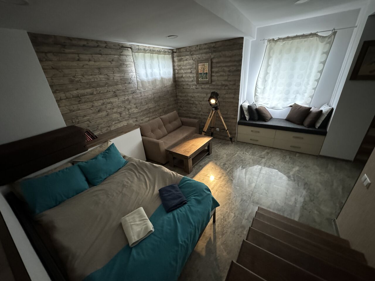 Студия, 75 кв.м., с отдельным входом, ванной, кухней, полностью оборудован всем необходимым. Двуспальная кровать, раскладной диван.
