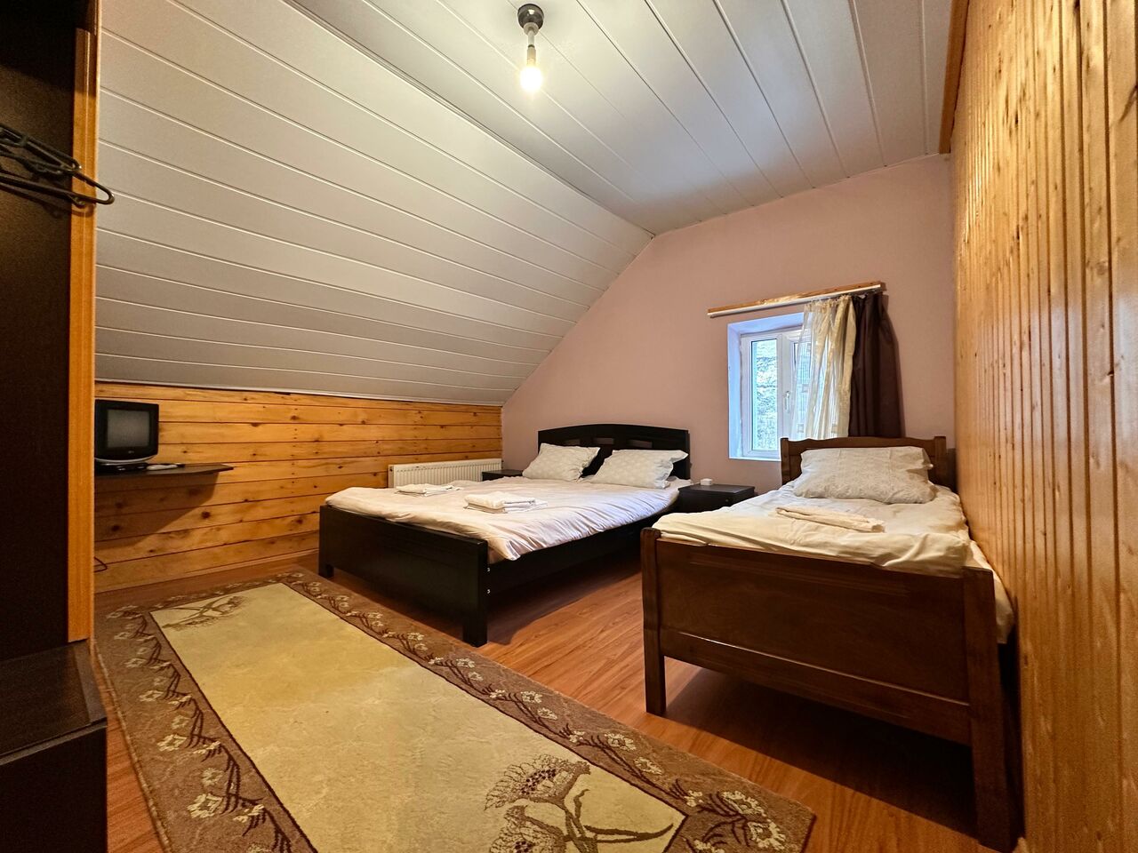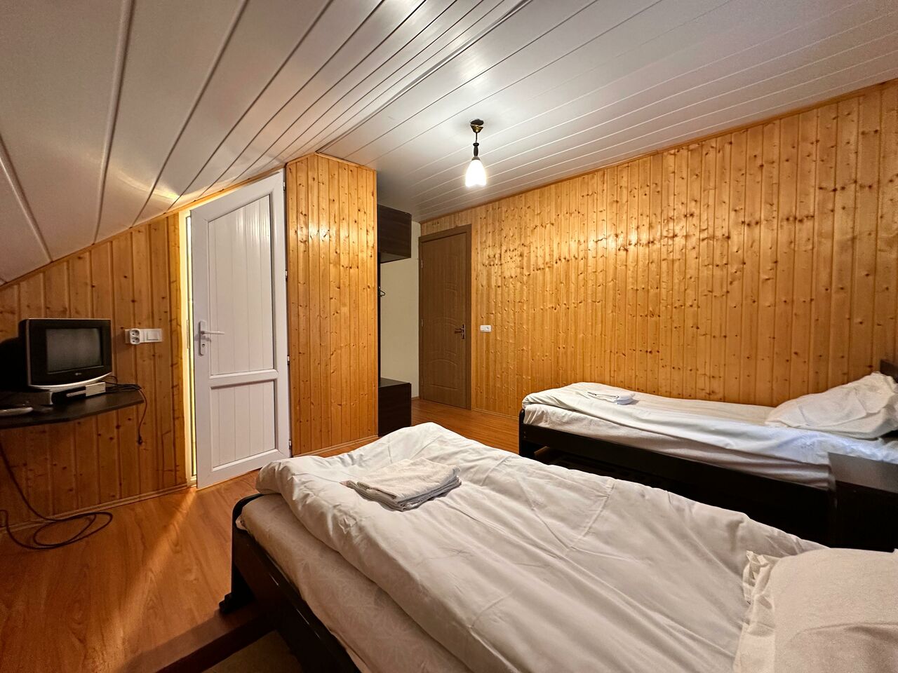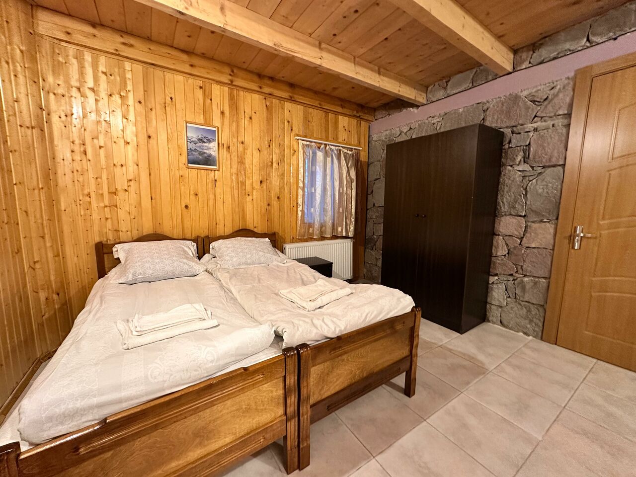 На втором и третьем этажах- номера. К Вашим услугам 2х, 3х и 4х местные номера. В 3х местных номерах: 2 кровати и диван (который можно разложить). В 4х местном номере, 17кв.м., 2 отдельные кровати и двухэтажная кровать. Номера очень теплые, отопление регулируется.
