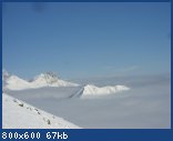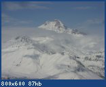 Подьемник тренькнул , потом внушительно заурчал и поехал. Молчаливый работник деловито обстукивал каждое сидение от налипшего снега , желтая ленточка пока преграждала нам путь , всему свое время , мы пока наших ждем . Вдруг где-то неподалеку раздался клекот вертолета , поднялся столб снежной пыли и чуть ли не из за кассы поднялся и резко отвалил в сторону аккуратный геликоптер . По брюхом у летающей птицы в сетке что-то лежало вроде ковра или чехла для лыж . Поглазев на вертолет мы упруго вскочили на подьемник и уже через минут эдак 10 пробовали первую трассу. Для разминочки , так сказать , поскольку она коротковата , плосковата и простовата. Внизу шоу скрытой камеры — все ржут со своих фоток , как будто в комнате смеха , никто не может сосредоточится перед фотографированием . Ну где -то в таком настрое и вываливаемся все на гудаурскую двойку . Зачем вы сюда приехали парни — нас ждут моря пухлого , катать- не перекатать , марш все на тройку ! А там — разлитая синева , сосущая глаза , яркий шар необычно висит где-то сзади справа , на чегетской второй очереди я привык прятать от него левую щеку , скромно отворачиваясь от Донгузоруна ..Верхушки гор купаются в утреннем молоке , словно верхушки айсбергов выглядывая острыми концами .