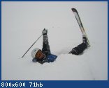 Утром за неимением ножа кантом обрезаю свежую заусеницу на одном Сете , на скользяк гляжу с прищуром , с опаской , да вроде не сильно , все-таки я с хорошим весом приехал , успел сбросится немного , хоть и цеплял пару раз клыки акульи , но быстро реагировал и площадку нигде не порвал , а борозды мы зальем . Минимум полметра пухлого лежало на нашем пути . Идем старым маршрутом , я столько снега в жизни не видел и это бесснежная зима в Гудаури !! На любом ходу гордый глиссер Збышко был на ровном киле . Катаем как заведенные , 4, 5 — как пропустить такое счастье ! От транформаторной будки падаем вниз — там необыкновенно красиво , и раз , через кулуар на ходу за легенькой Катюхой , Масики слегка подсели , будут выгребаться , суровые парни Айс Боб и Икра держатся , большой снег в помощь , Готама рулит . И на тебе , устав от счастья , уже на пологом выкате Икра открывает второй фронт — перелетев первый овраг , цепляет носком второй , издали наблюдаем как он , неловко оттопырив руку , собирает лыжи , явно проблема . С ним Айс Боб. Явно краш , уж очень все выглядит напряженно . Помалу опускаем его на поляну перд двойкой , первично и привычно осматриваю — ну вроде и функция сохранена и анатомически все правильно , но есть сильные боли , криком кричит . Все , отправляем в медпункт , сами слегка оглушенные , где - то подспудно чувствуя свою вину , сбавляем обороты . Для разрядки лезем с Кудеби в кулуар налево сверху от подьемника . Там вначале каменный мешок , иду первым , нужна встряска . Прыжок , несильный удар и пошла скорость , растет как у реактивного болида , рулеж непоколебим , дуги по полкилометра , носки Сетов прямо перед глазами машут с полуметровой амплитудой . На ровном выкате в двух метрах от себя замечаю обрыв с двухметрового камня , от прыжка с которого уйти нет ни времени , ни возможности , ни тем более желания . Ну не сто метров же внизу , ты же реальный псих , Збышко !! Прыжок !! Как тихо вокруг , как медленно , как быстро …....Удар , мягко , тяжеловат снежок на излете , чуть лег на спину , но это было !! Тормоз , взгляд назад , ты же не сам , где мои ….. Вот эти фигурки вверху , на уровне птиц , это что , я там только что был ? О , матка бозка , мама миа , мадонна неаполитанская !!! Это же ваккуум , спресованное время , выход в четвертое измерение !! Эй, ты , нарцисс , ты видишь кого-нибудь ? Вижу , Димка по-моему потерял лыжу и палкой работает как щупом , ну этот парень сам справится , живучий и везучий , бордеры пошли через обычный крутяк , Катя вздымает феерические фонтаны снега чуть правее по склону . I T WAS COOL , GUYS !!!!!!