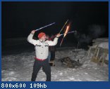 | natt: Ближе к ночи пришли гости из гостиницы неподалеку. А Новый Год все приближался, и тут мы вспомнили, что надо бы к нему подготовиться. Мы девченки потопали на кухню готовить что можно из того, что оказалось у Гоги в холодильнике. Проявили себя стойко, импровизация лилась через край, но все остались довольны нашей стряпней, а мы – этим фактом :) Пол 12, а мы еще на кухне. В это время Миха Путин жарил шашлык на 20-градусном морозе (ай-яй-яй местным мужчинам, это чтобы гость из России жарил им шашлык!). Едва успев переодеться в более или менее праздничную форму, по-местному в 12 ровно (или не совсем, ибо часы у Гоги, кстати тоже в форме сноуборда, работали не весть как и кажется отставали) мы в первый раз встретили Новый 2007 год, а через час по-московскому времени, по-украински в разговоре профукали, зато отметили и по-европейски. |