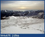 Наличие снега откровенно порадовало. За 8 катальных дней почти не разу по серьезному камней не словил. Разве, что на ратраченных склонах вскрывалась щебенка. На момент приезда было много целины. Которая по мере приезда орд была закатана за пару дней. Однако Боженька нас любит и порадовал снегопадом, а на утро дал солнечный денек. Качество снега тоже приличное. Кардинальных оттепелей не было. Снег с утра умеренно жесткий, к обеду отпускало, но не до раскисания. Единственный день отпустило сильно, и на следующий день образовался на целине наст, расколбас тоже был не комфортный, колдобистый. Это практический единственный за восемь дней день (надо добавить еще легкую метель, отсутствие солнца и бестеневое освещение) когда, со склона ушел без чувства глубокого удовлетворения.