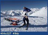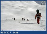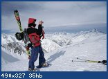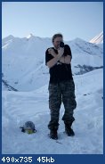 А мы продолжили кататься. Шея стала с трудом поворачиваться, канатчики начали признавать за своего, грузинские девочки уже не казались экзотикой. Но стало хотеться чего-то большего... И вот вечером в «Альпин-Хат» Гия с Сашей предложили с утречка сходить на соседнюю вершину Садзели и спуститься с нее в соседнее ущелье. Сказано - сделано. От нашей «дринк» сборной было выделено 3 делегата: Макс, Мишка и я. Моя еврейская душонка не могла не упаковаться в такое дело по самое небалуйся. Вот некоторые из полученных навыков: 1. Снегоступами я пользоваться не умею. Лоцманов их с меня стащил, и дальше ходил сам. 2. Рюкзак Фанатик - это супер-пупер-мега штука. 3. Крепления у меня разбалтываются ого-го как... то ли я тяжелый... то ли винтики сами разбалтываются. Пол спуска ехал как гребаный телемаркер. 4. Идти вверх во флиске и шлеме ох как жарко! Снял их нафиг. Наверху моментально напялил: ветер - ужасть.