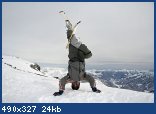 В домике устроились втроем на насесте-чердаке. Отличные мягкие матрасы и возможность храпеть во все горло не будучи никем за это пристукнутым не могла не радовать :) Утром я подскочил от невероятного солнца, бьющего в окошко! За окном были ГОРЫ! Тут уже не до знакомств и общения. Бегом-бегом на склон - как только открылись подъемники, катание началось Снег был... Не то, чтобы его было мало... По московским меркам даже много. Но грузины воротили нос и говорили, что такое они видят в первый раз, и как по такому кататься не ясно. А мне нормально - я в танке :) Соответственно была опробована первая "настоящая" целина. Зарылся носом в снег о первый же камень... Еле-еле выбрался на начало канатки. Отсюда вывод: Не умеешь – не лезь. Учиться надо было постепенно. Набрал полные штаны снега и