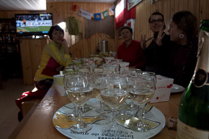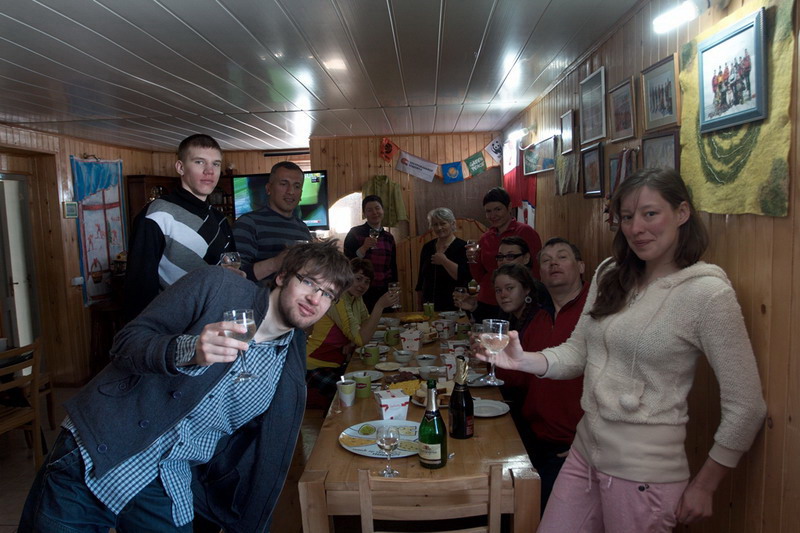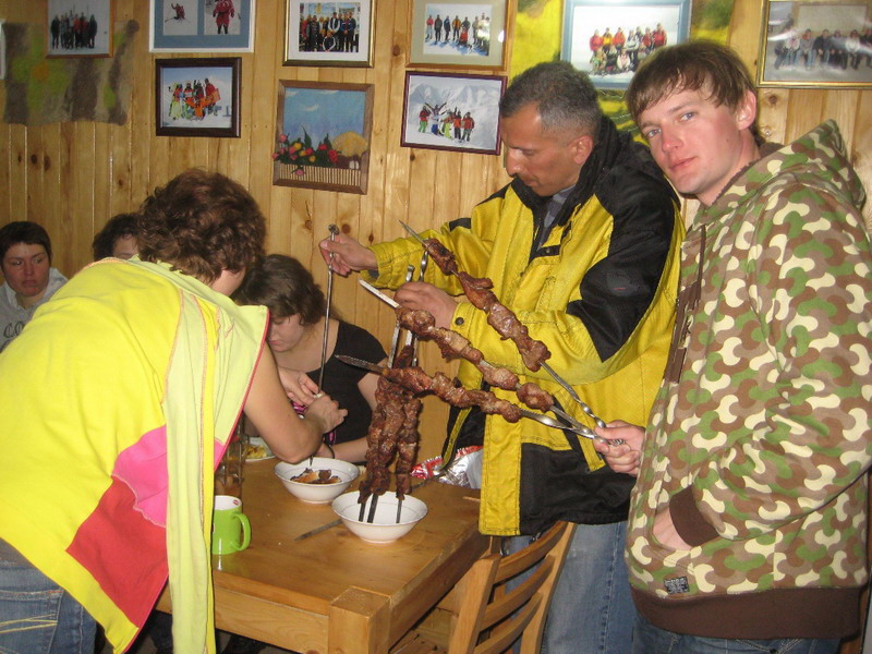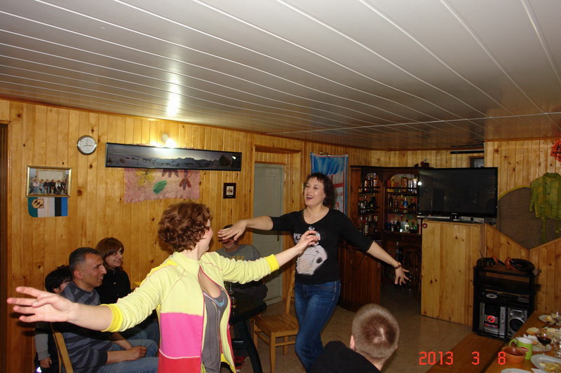 После интенсивного катания (а как же иначе освобождать организм от чачи и вина выпитого накануне, только интенсивные физические нагрузи + чистый воздух и ты к вечеру готов к очередному употреблению "неотъемлемой составляющей" отдыха зимой в горах:))) ) , шашлык, вино и чача от ИЛО, превзошли все ожидания и женщины нашей дружной команды почувствовали себя царицами!!! Грузинские танцы и песни, тосты и вино из рога, домашняя атмосфера, чувствуешь себя на другой планете...праздник оставил незабываемые впечатления. Спасибо хозяину Парнаса.