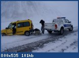 Доехали до Коби в метель - полицейские на посту в Коби помогли нам выехать с обоячины, где мы сели на пузо и посоветовали возвращаться, если будут проблемы. Одели цепи на ведущие и поехали. До вершины Крестового перевала доехали, на спуске - видимость была нулевая, заехали в обочину, чуть не слетев с обрыва, решили судьбу не дразнить и вернуть назад, пока хоть что то видно.