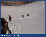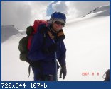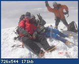 Проснулись рано – разбудили поляки, которые прошли наверх из лагеря. Попили чай и не спеша, часов в девять вышли. Одели кошки, хотя снег уже был мягкий, и можно было идти без них. Далее тропа разделяется на две – левая «в обход» более пологая, правая покруче. Пошли по правой, здесь обязательно нужен ледоруб для страховки. Встретились с поляками, начали подниматься на перемычку – очень глубокий снег, много следов. С перемычки на вершину поднялись в хорошем темпе – были хорошие следы и твердый снег. Жаль только хорошей видимости не было! В полдень были на вершине.