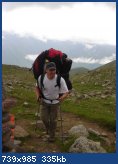 Далее было приключение на спуске с перемычки. Добрые люди поставили вешки из веточек – ну мы по ним и побежали. Сильно сбросив высоту прямо вниз, поняли что наша тропа давно ушла на лево – наверное это маршрут с российской стороны! Пришлось возвращаться траверсируя к нашему лагерю. В этот же день спустились на метеостанцию.