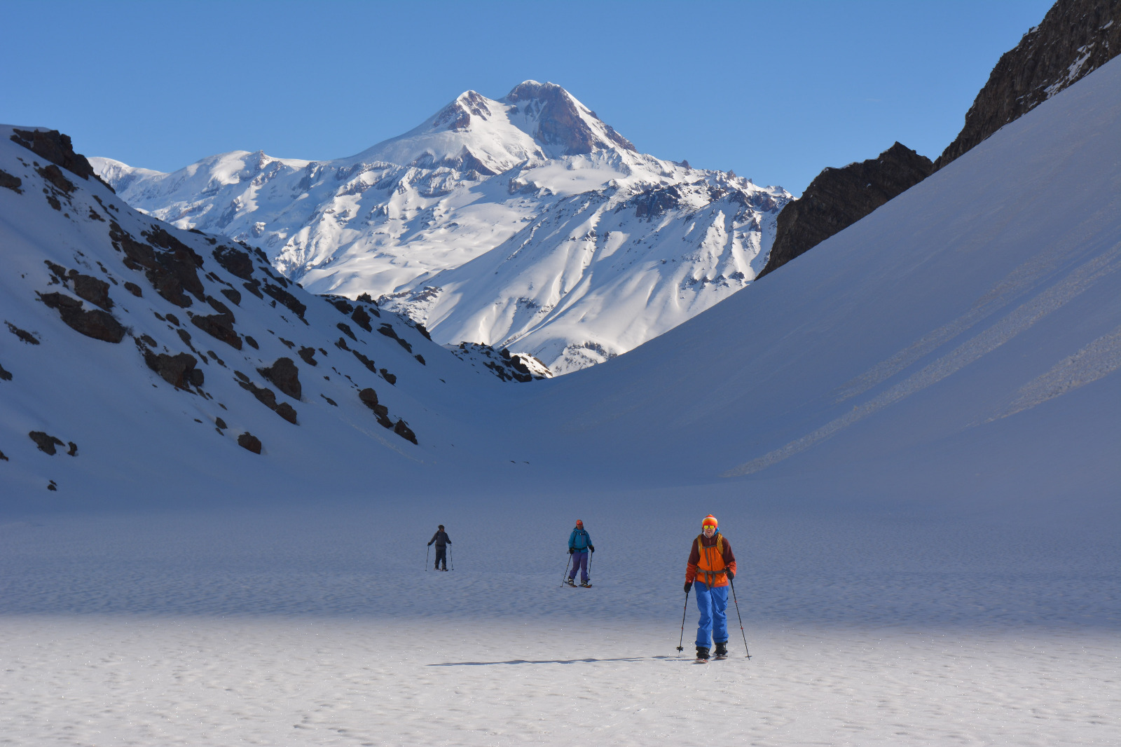 Одно из самых сложных и интересных направлений. Это многодневные выходы на скитуре с бивуачным снаряжением в совершенно дикие локации (массив Чаухи, г. Казбек – 5034 м, г. Шерхота, вулкан Хорисар и т.д. Программы разрабатываются индивидуально для групп с учетом всех нюансов: время года, количество дней, физическая и техническая подготовка, пожелания и т.п.