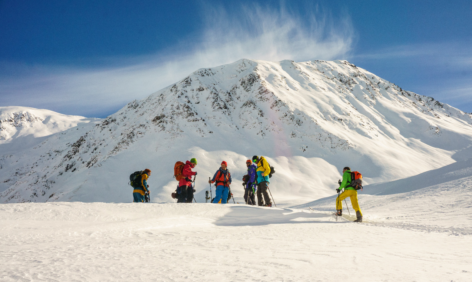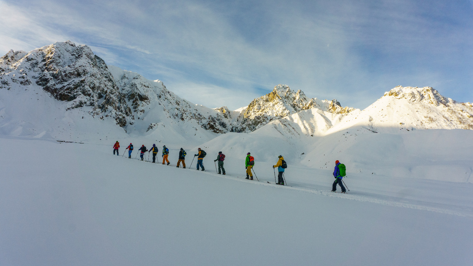 Это очень насыщенные 5-дневные обучающие модули двух уровней: Базовый курс и Продвинутый курс (Школа скитура). Помимо самого процесса катания вне трасс, в программах делается упор на такие темы, как безопасность во фрирайде (в первую очередь основы лавинной безопасности), тактика, организация поисково-спасательных работ. Базовый курс формирует практическую и теоретическую основу, необходимую для безопасного катания вне трасс. Продвинутый курс – это обучение скитуру и продолжение темы безопасности: техника подъема, выбор линии спуска, анализ слоев снега, оценка лавинной обстановки (значительная часть этого модуля проводится в более диких локациях вдалеке от курорта).