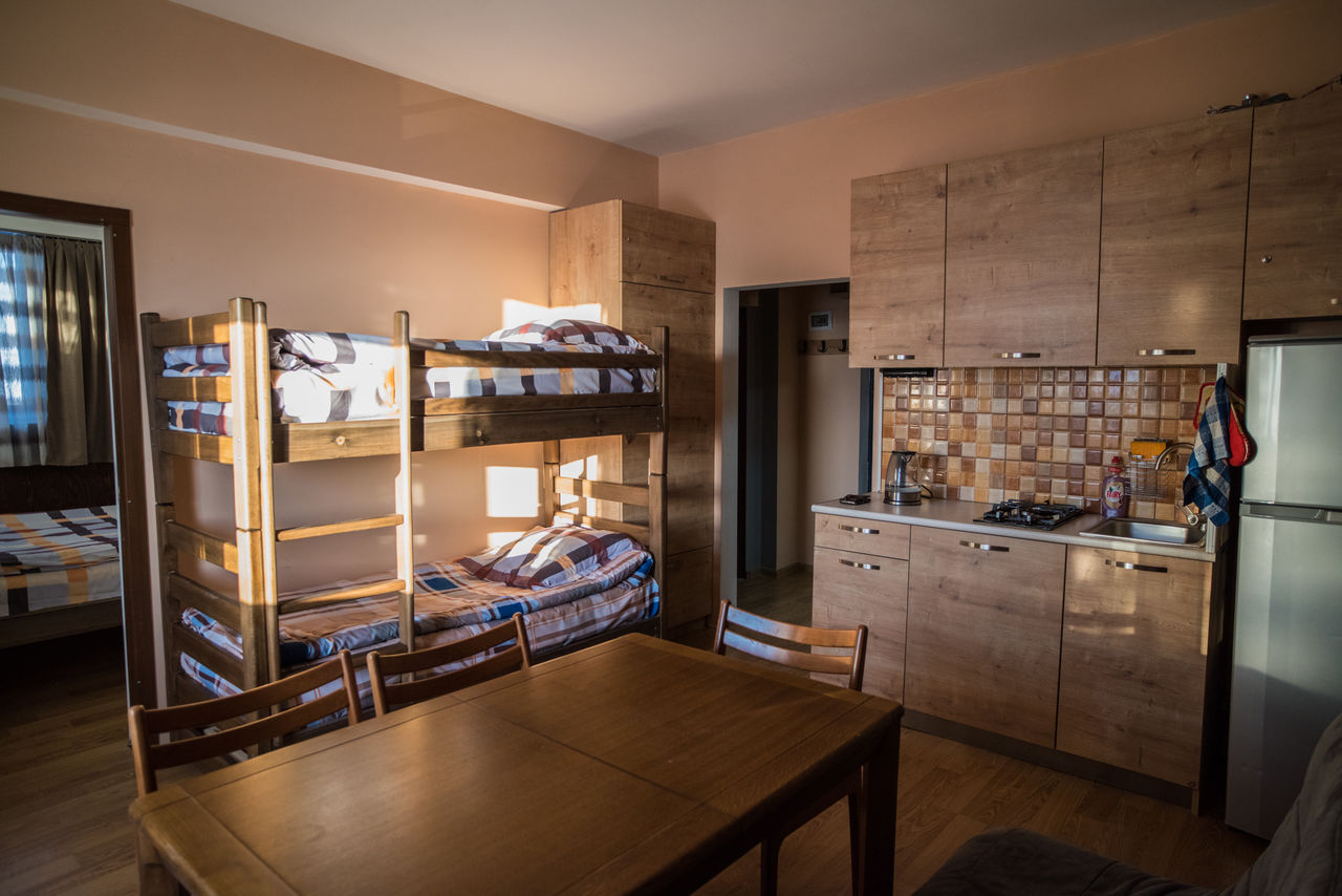 Дом в 300 метрах от канатки. Подниматься пешком 7 минут, обратно можно скатится до дома. |